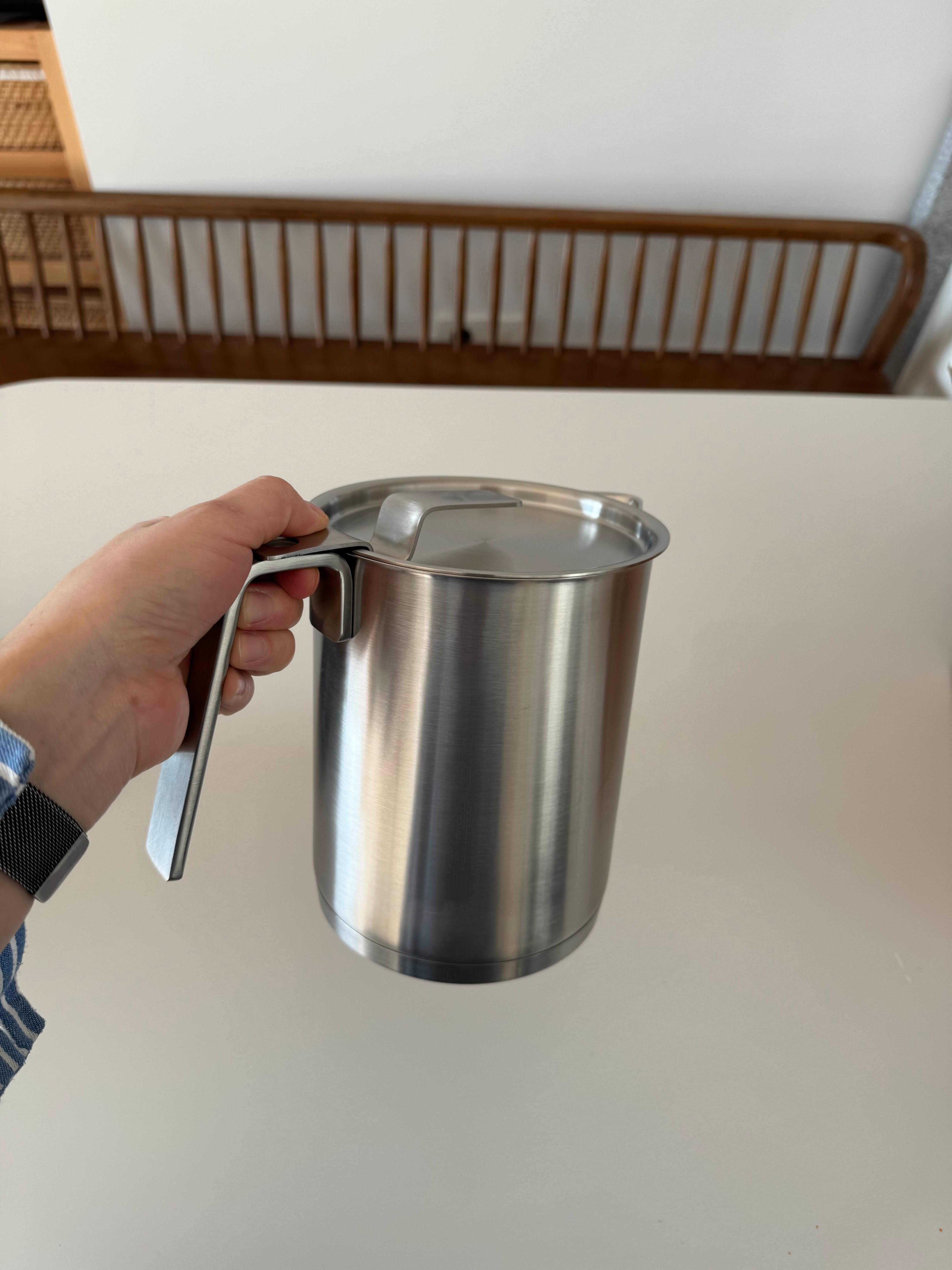 좁은 주둥이와 통으로 내부가 이뤄지지 않았기에 우유를 데우기도 꺼려져서 오로지 물 끓이는 용도로만 사용해 아쉬움이 많았는데 프라우허 케틀앤보틀의 주전자는 다양하게 사용하여도 내부 세척이 쉬워 정말 마음에 들었습니다.